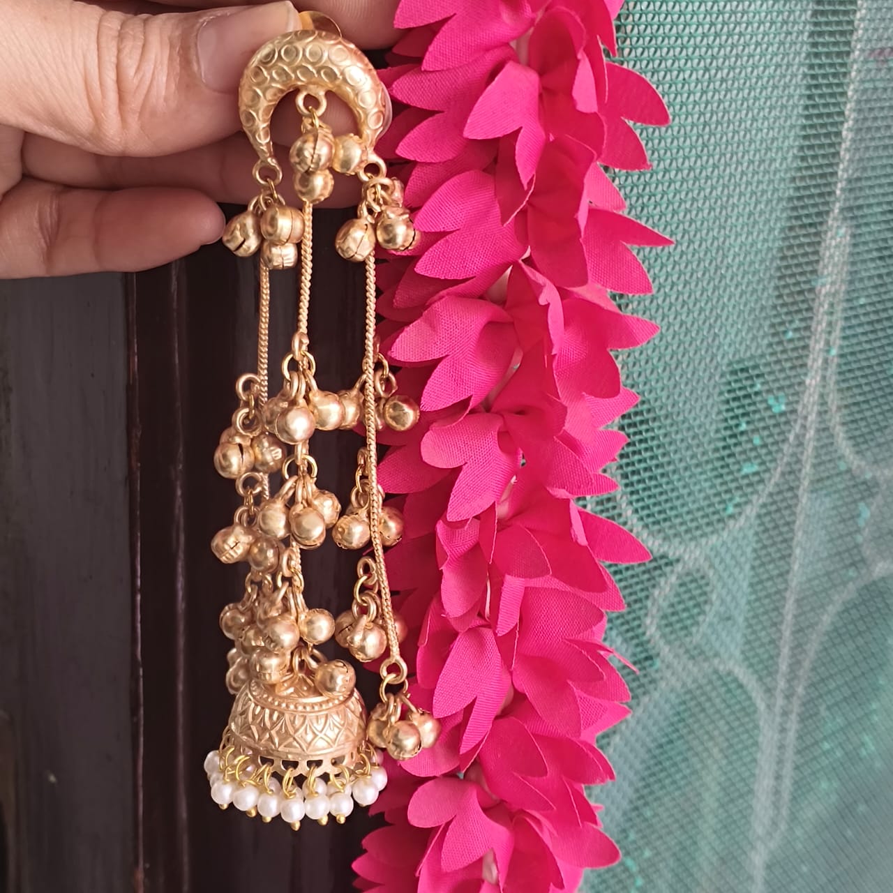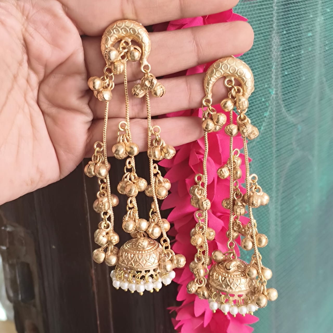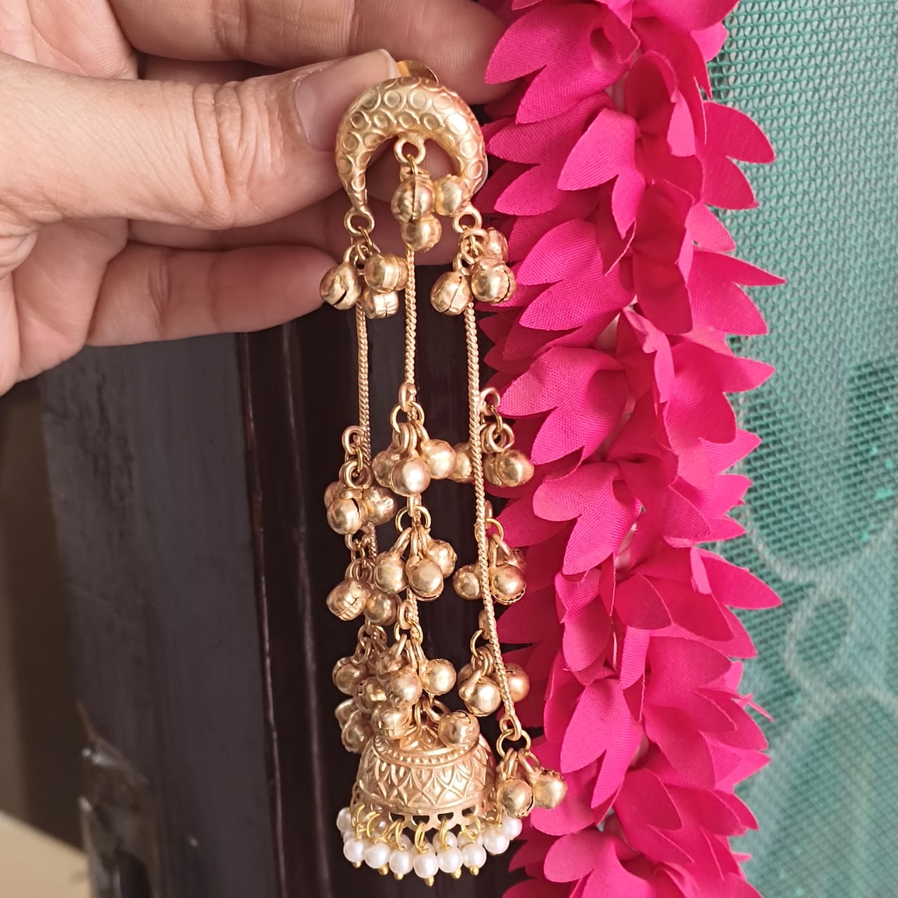 Traditional , golden matte , soothing sound of ghungroos, Kashmiri Earrings giving perfect traditional vibes, very lightweight, partywear , modern Jhumka